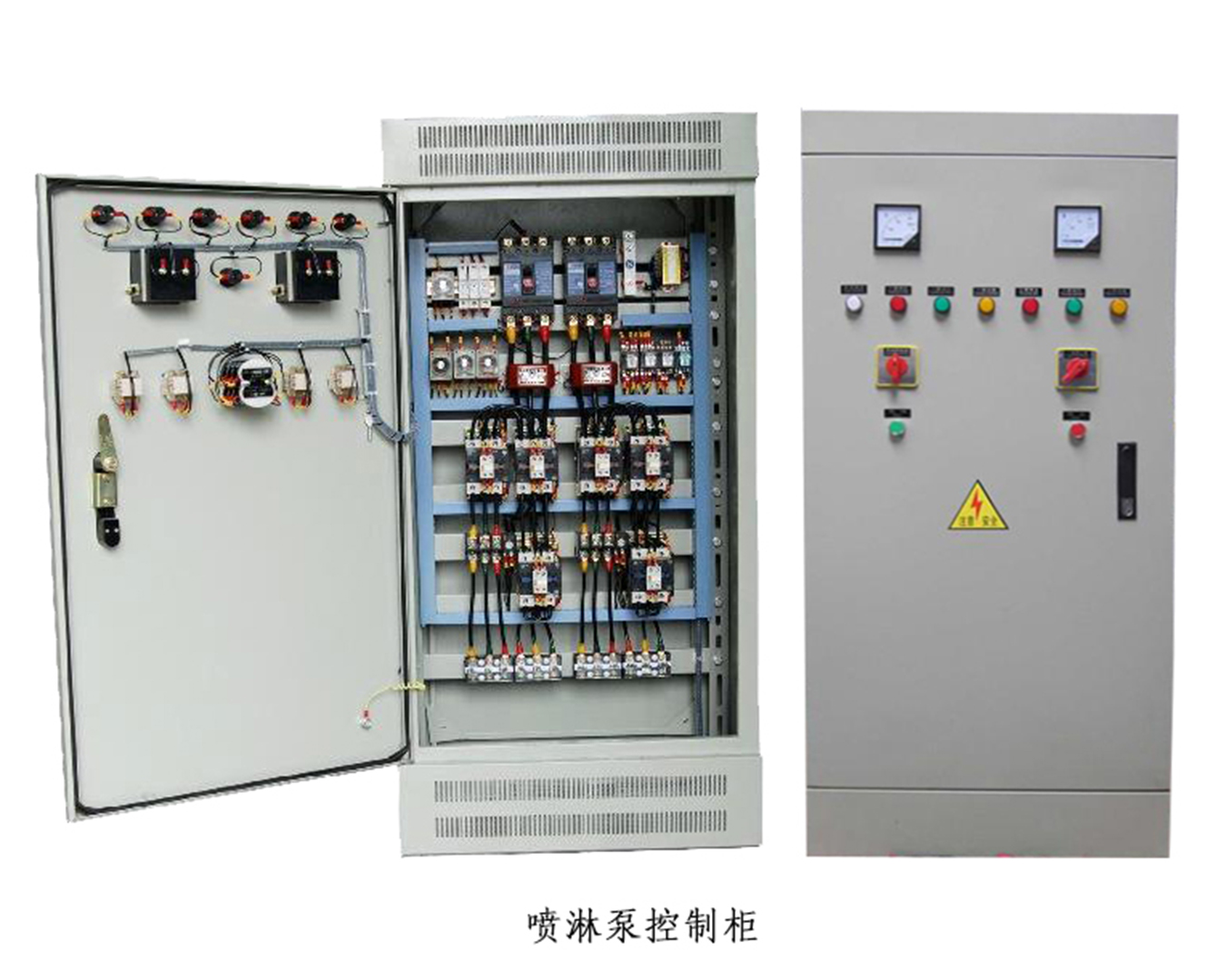 消防水泵控制柜一般有兩種控制方式:一種是消火栓控制,一種是噴淋泵控制。 噴淋泵控制柜的工作原理是:設(shè)計有壓力控制器常開觸點,當(dāng)由于壓力差引起壓力繼電器動作時,控制回路使得主回路動作,然后啟動噴淋泵。